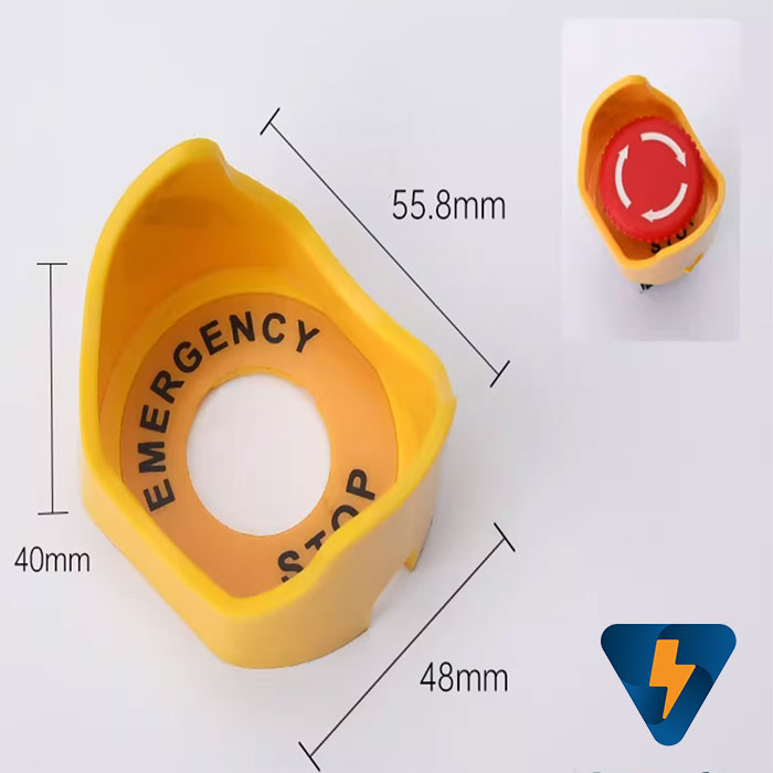 Chụp bảo vệ dừng khẩn nút nhấn cove nút nhấn dừng khẩn cấp được in chữ EMERGENCE Stop với màu vàng dễ nhận biết, đặc trưng riêng. Giúp người vận hành dễ nhận biết đồng thời bảo vệ nút nhấn khẩn cấp trong quá trình vận chuyển, di dời máy móc thiết bị. Hoặc hạn chế những tác động ngoài ý muốn trong việc dừng máy khẩn cấp ngoài ý muốn.