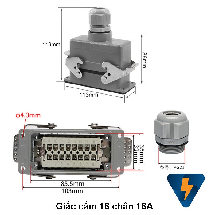 Thông số kỹ : HDC-HE-016-2 Đầu nối dây điện HDC-HE-016-F HDC-HE-016-M